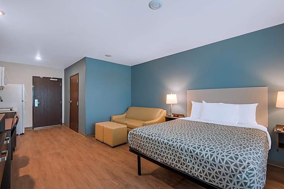 This spacious room features a fully-equipped kitchen, seating area, and sofa bed.